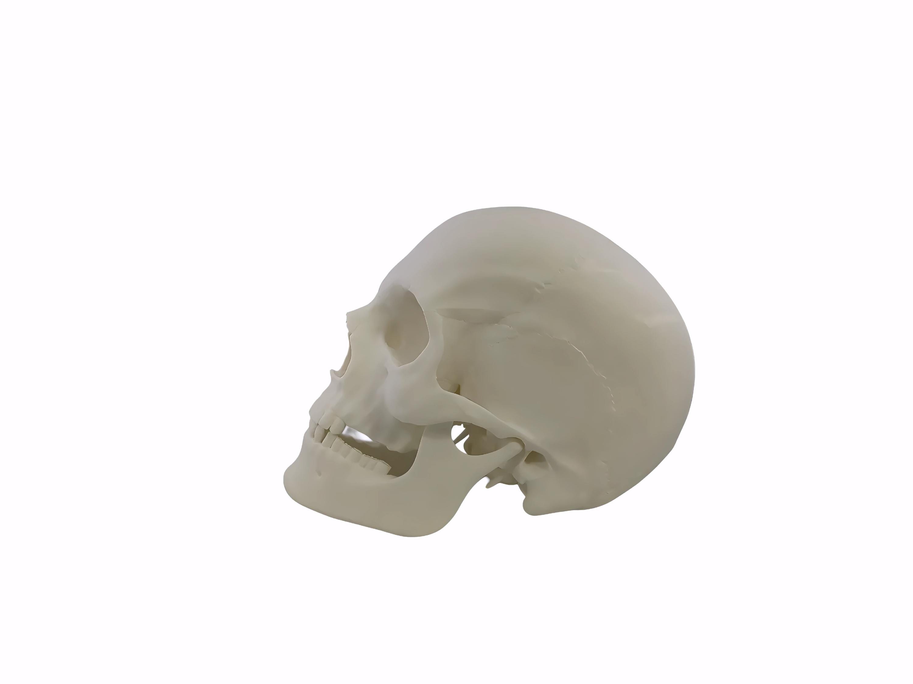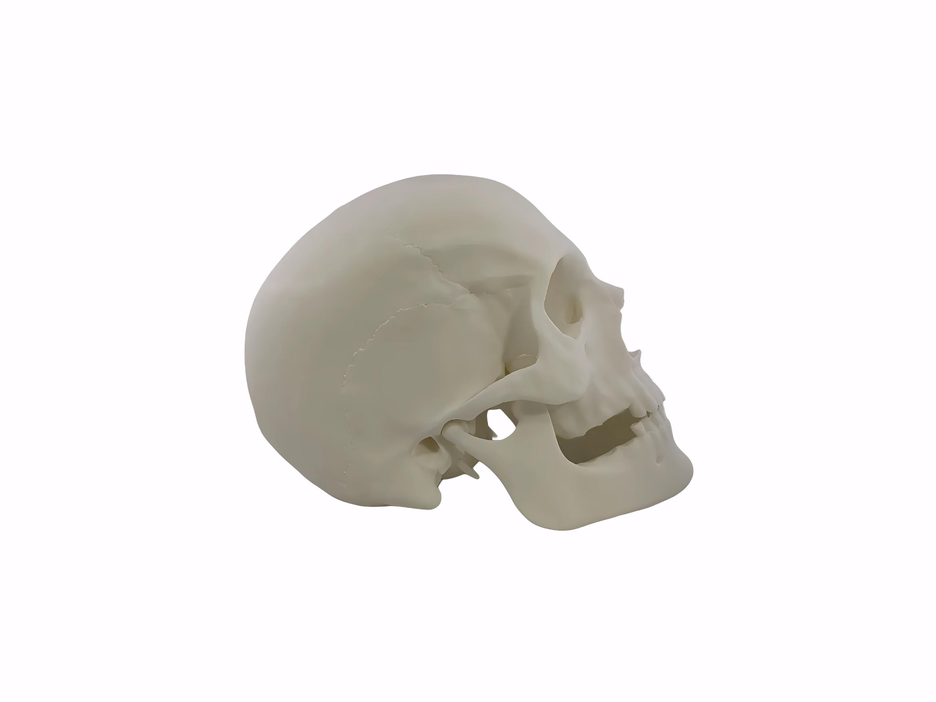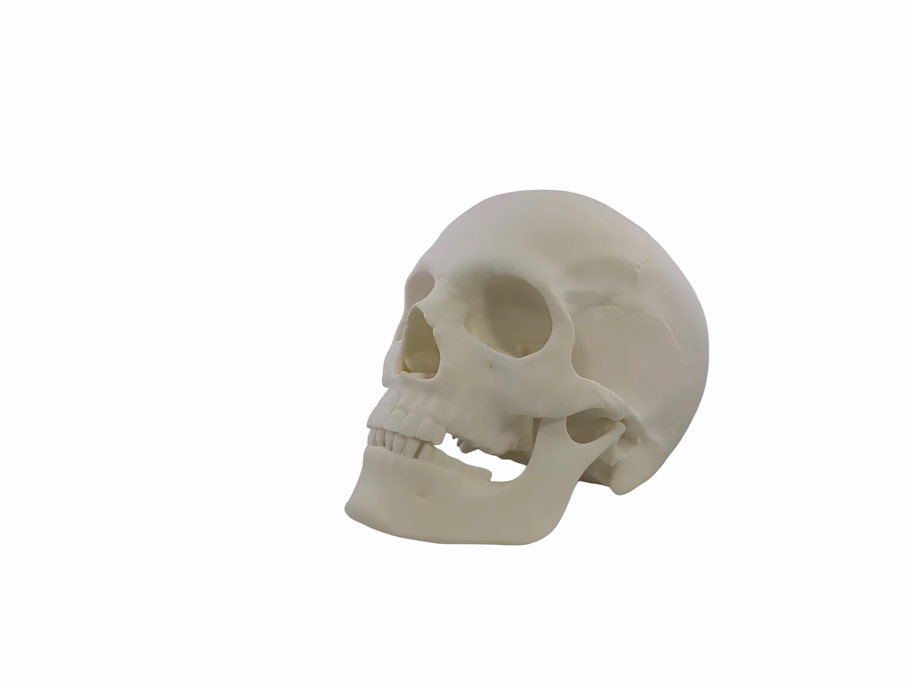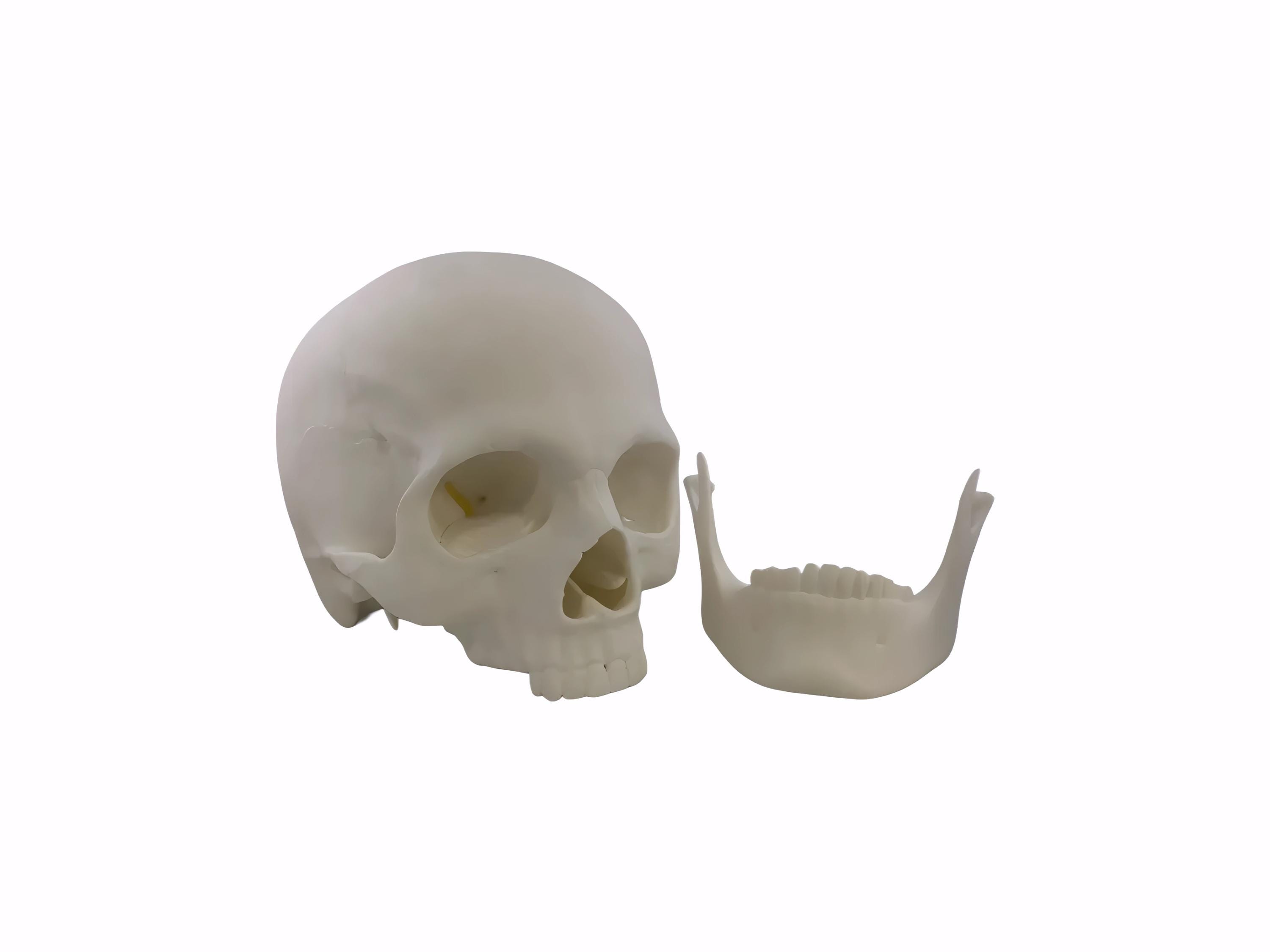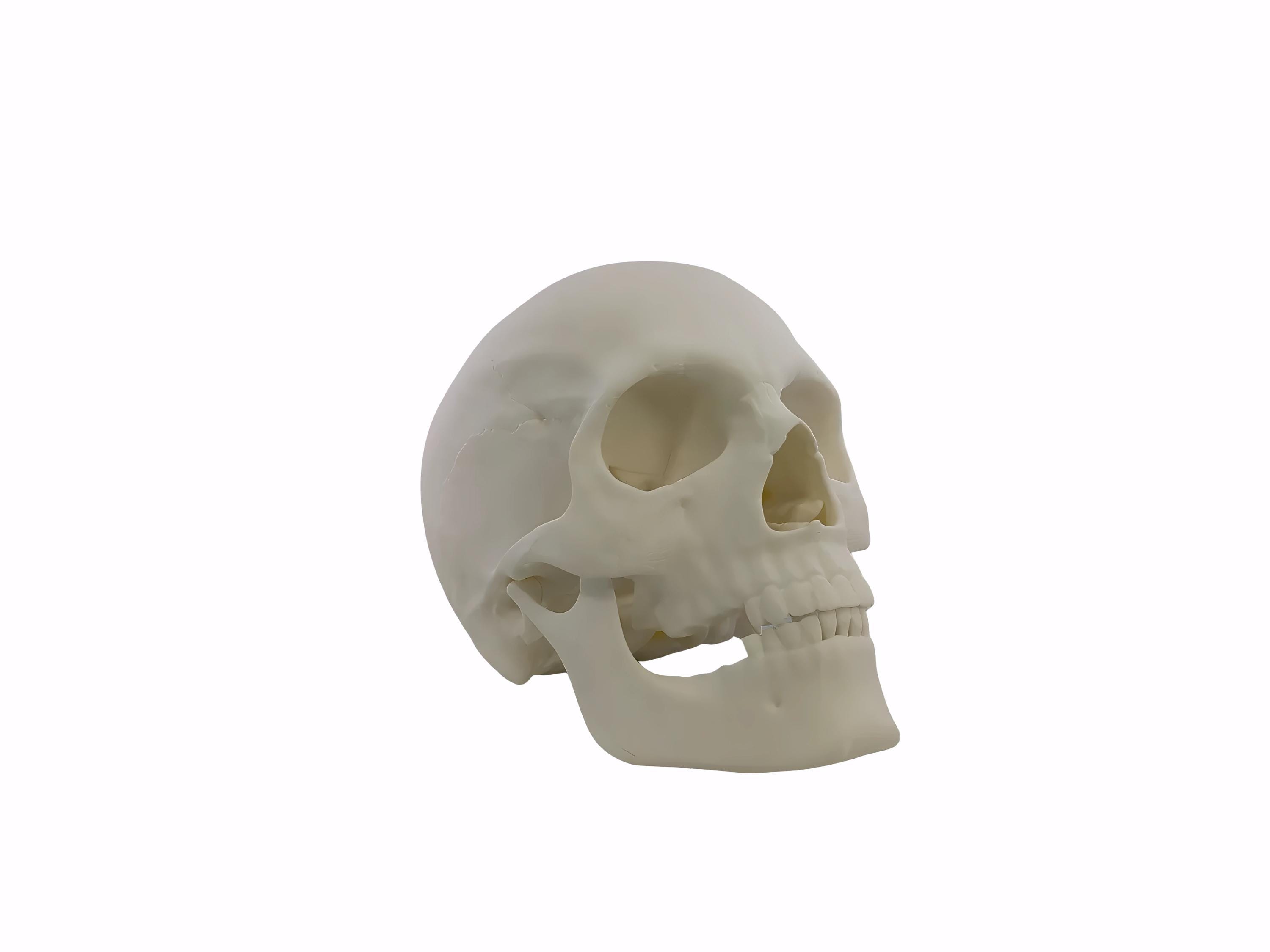The jaw of the skull is hinged so that it can be opened, closed, and removed as you like. Display stands are available in the shop.